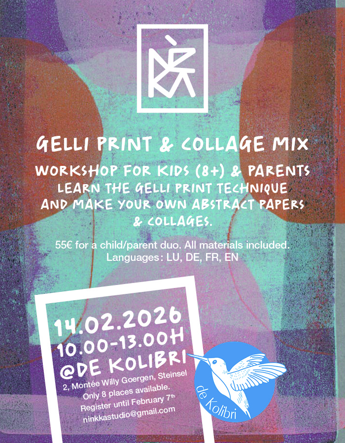 ! WITH an accompanying person ! 6+ Atelier créatif pour parents-enfants La collage est une technique simple qui ne nécessite pas de connaissances particulières ni de matériel spécial, mais qui est très amusant et stimule la créativité. Après une brève explication de la technique du...